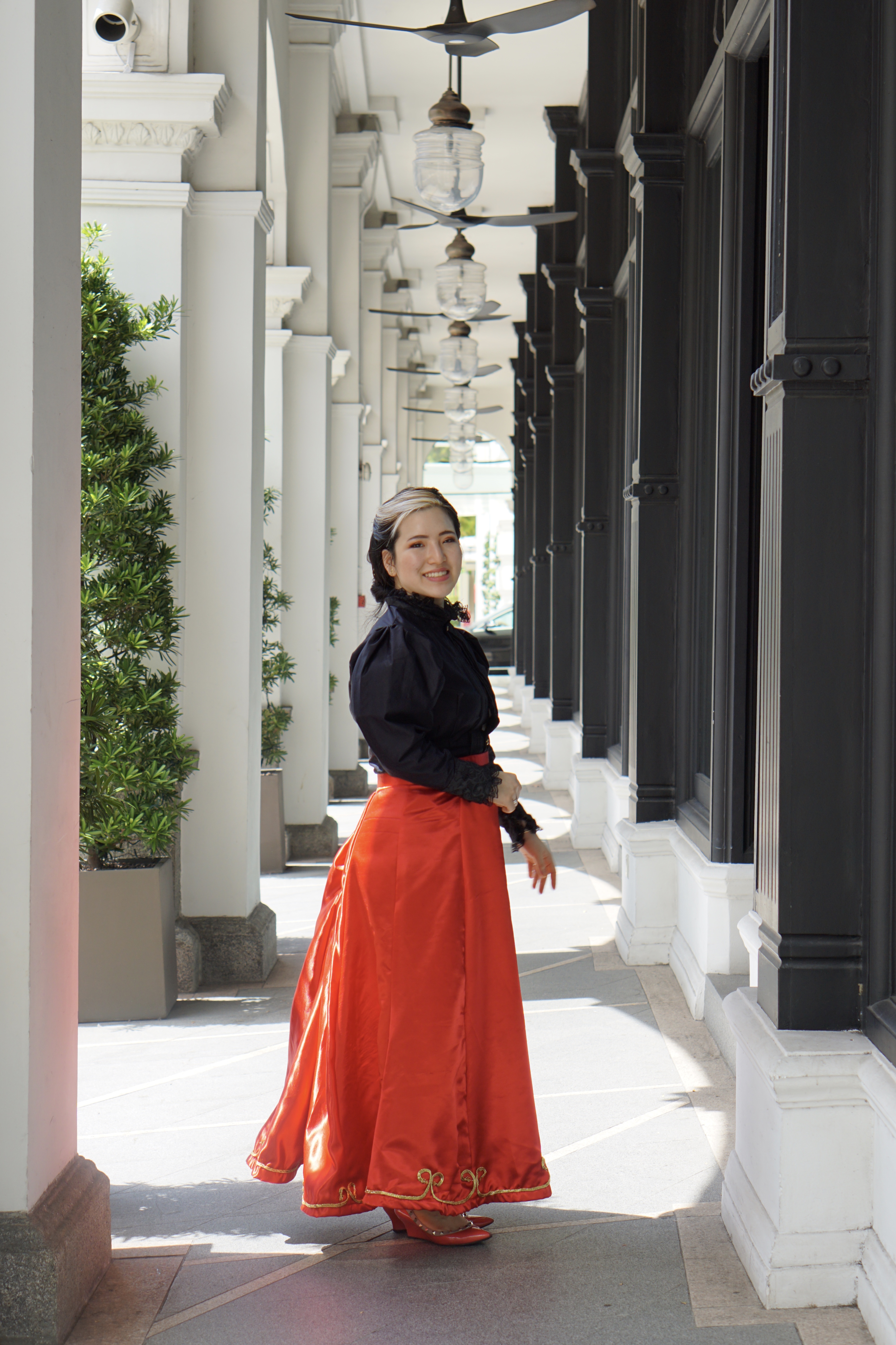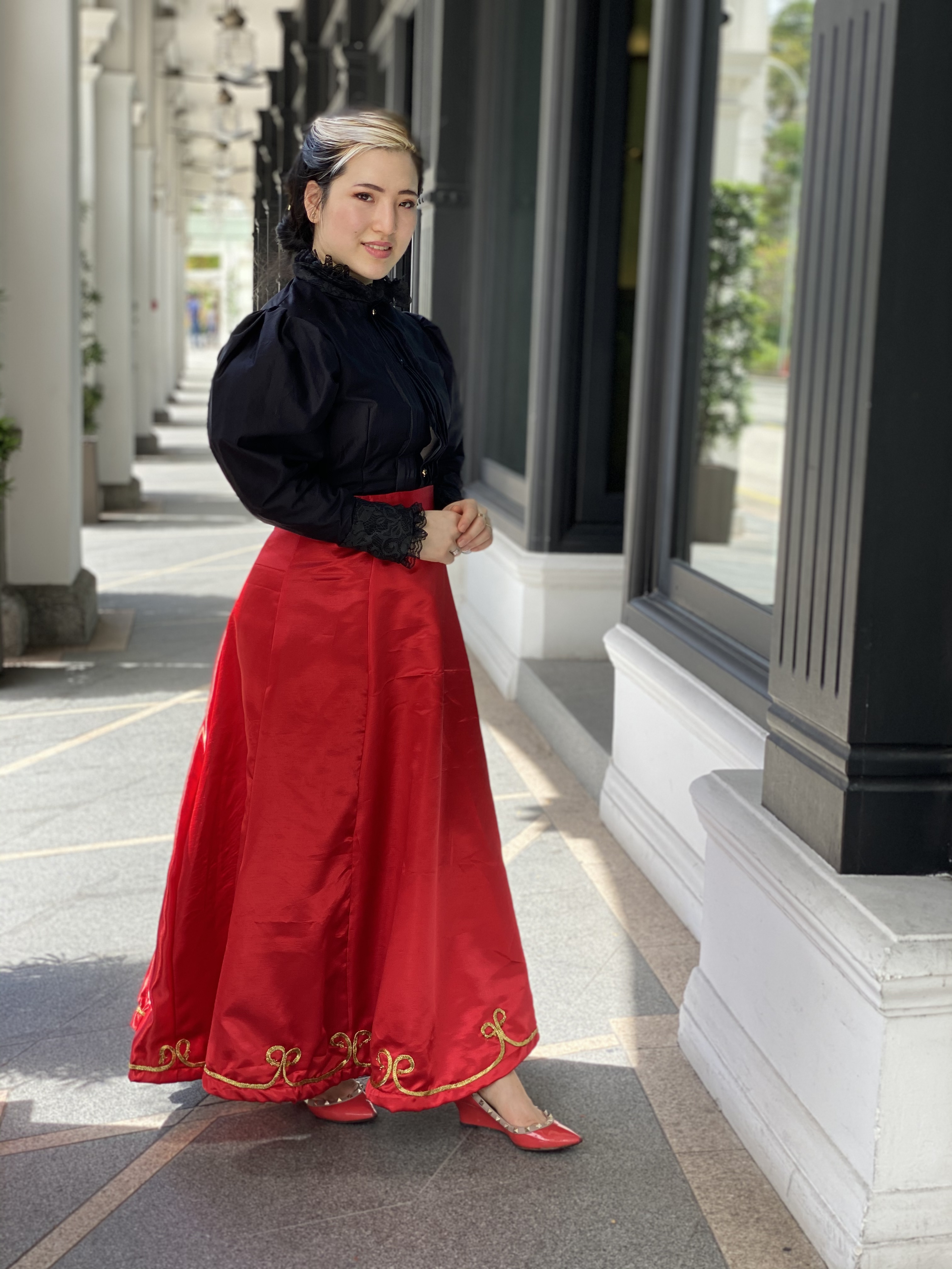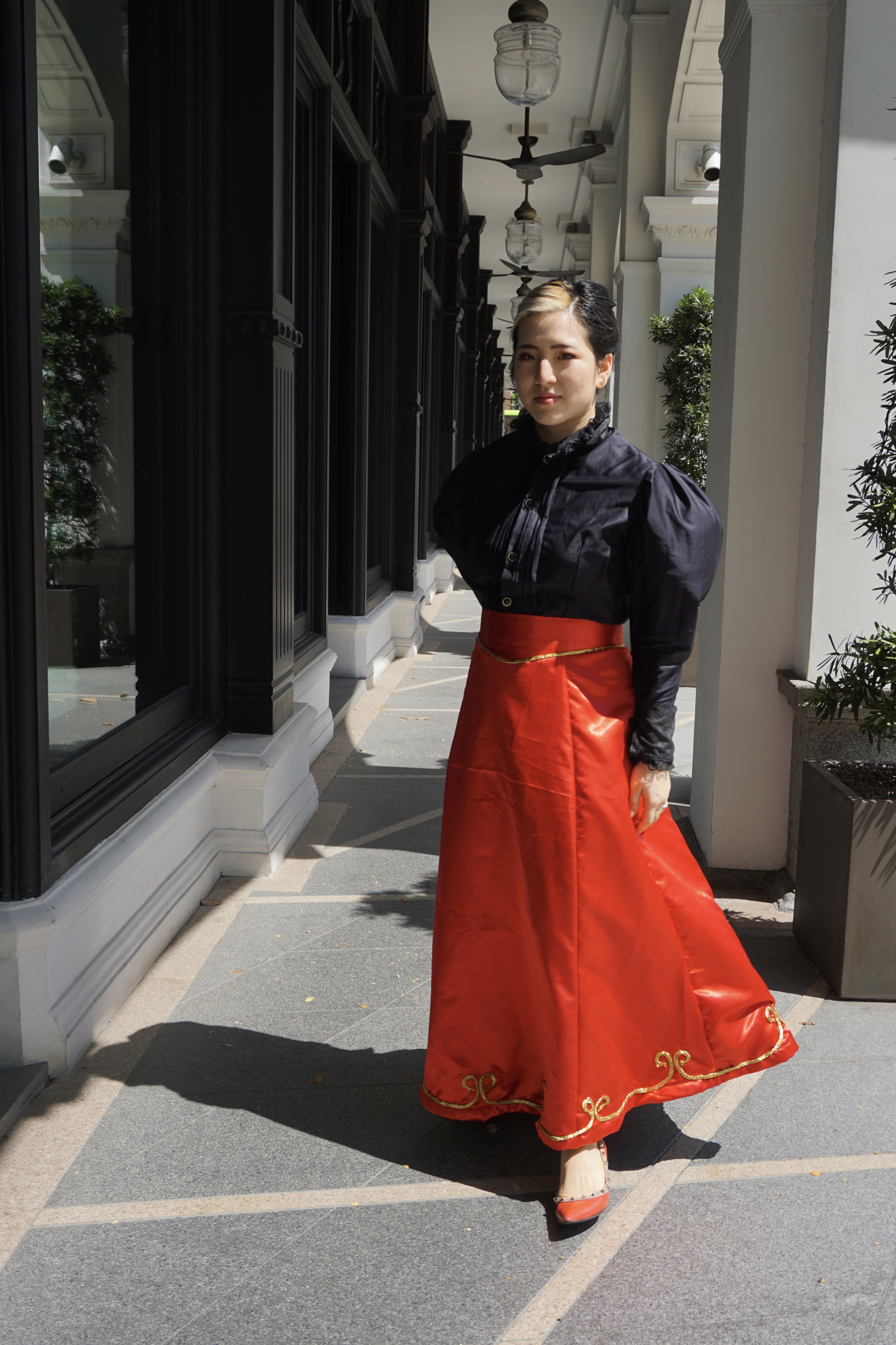 The skirt is shorter than most skirts would have been because I didn’t want to have to keep picking up the hem whenever I walked. I also realised that the pleats are so voluminous because I sewed the lining and the fabric together before pleating instead of after.