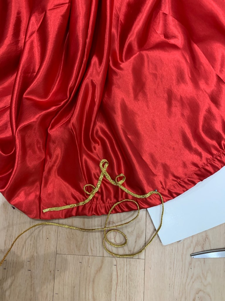 notions: Hook and eye tape, 2 sets of hooks and bars, horsehair braid for the hem. Around 7m of gold braid