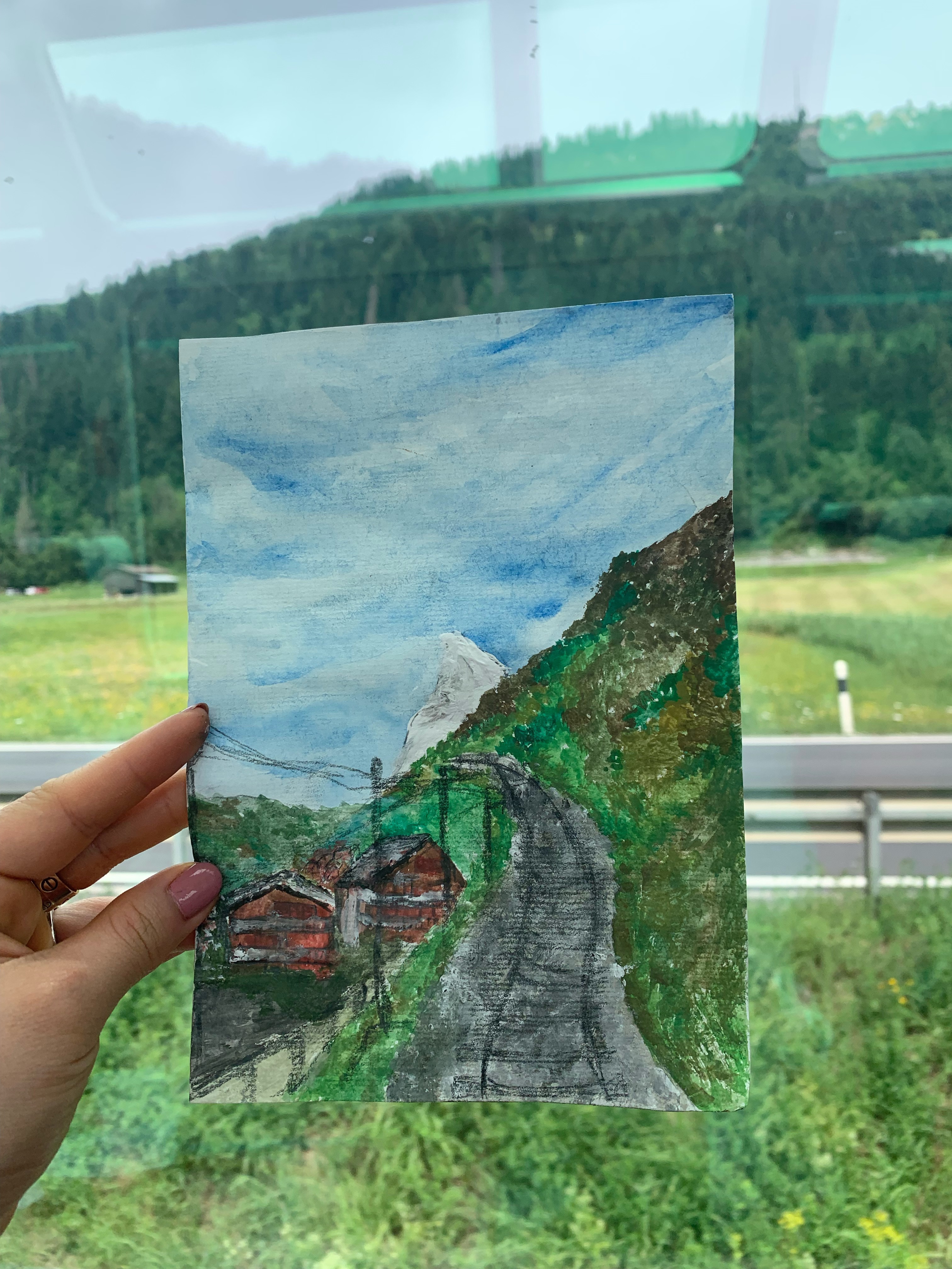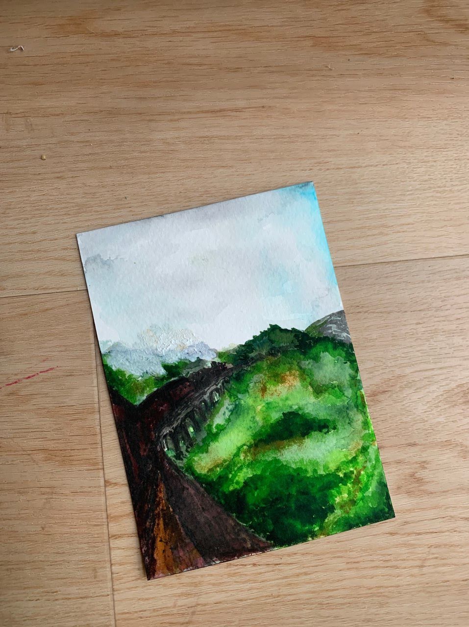 I use a combination of markers, watercolours and paint for these. I think I’m much better at landscapes than I am at portraits, and the only portrait that I’ve done doesn’t even have a face.