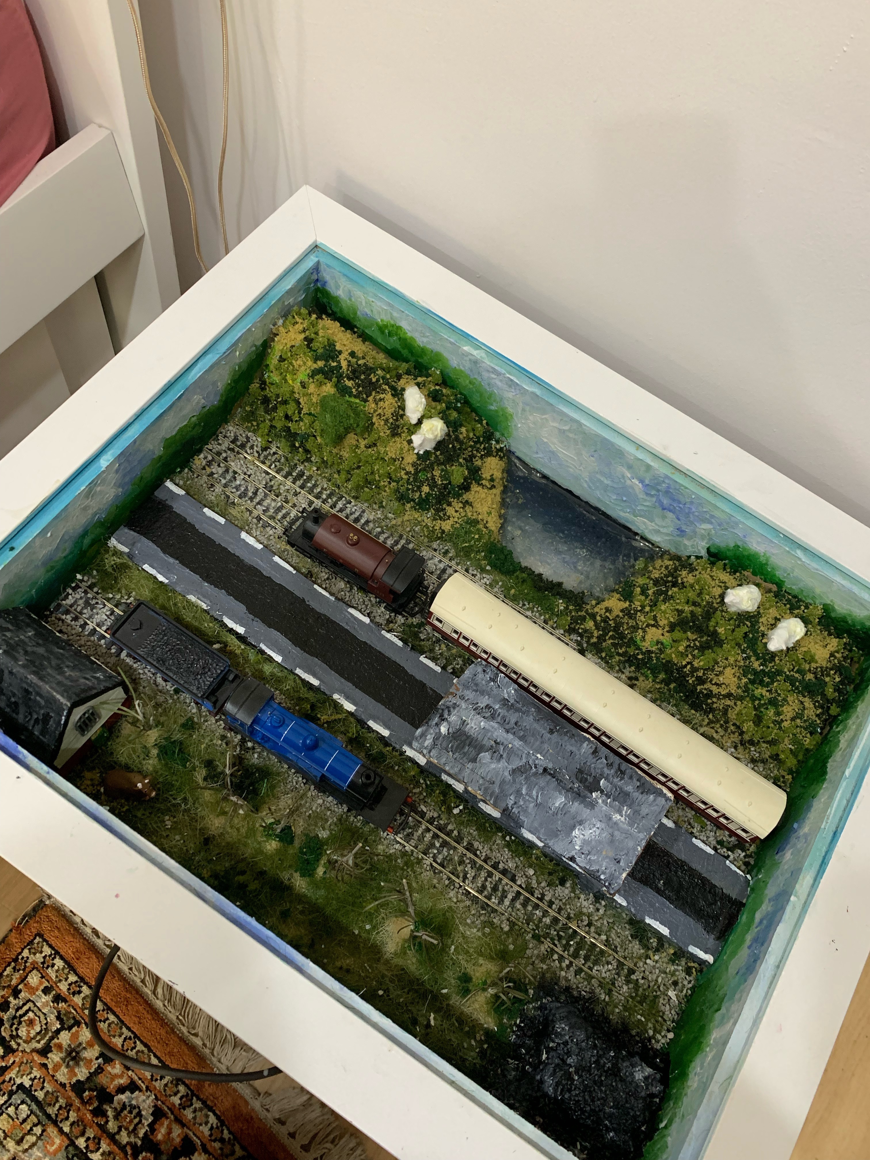 I adore trains, especially steam locomotives. While I do like model trains, I don’t like to just have them there so I try to incorporate them into something “useful”.