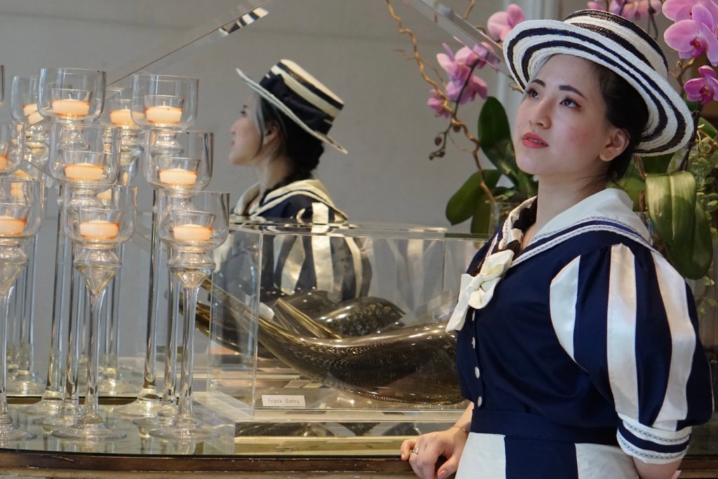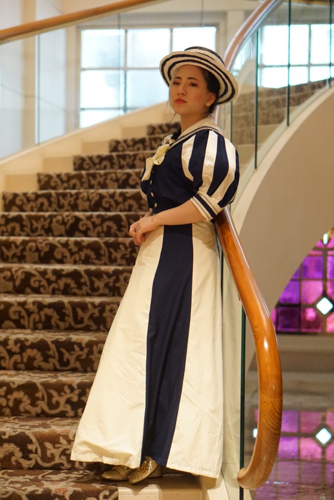 I was going for a late Victorian/early Edwardian seaside-inspired look inspired by some of the images I found while mucking around Pinterest as well as a Victorian bathing costume.