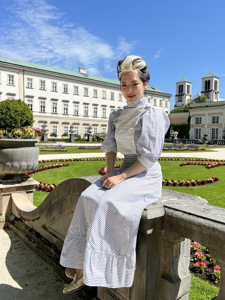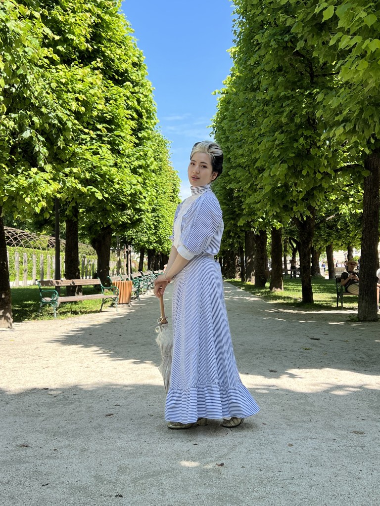 I went to Germany/Austria in June 2022 and here are some of the pictures from it. I made the lovely striped outfit, chevron blouse and Edwardian lingerie dress, all of which I really really love still. I do love stripes